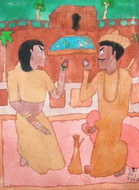 Nobleman and his wife in the palace open air garden